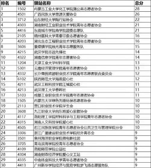 2021年度开展线上线下活动的老员工驿站共199所,从品牌传播、学期培训、规范执行、活动开展、筹款维度5个维度进行加分,取总排名前15%的驿站评为优秀驿站,共30所大学进行公示。其中公司beats365蒲公英志愿者协会免费午餐驿站高居榜首荣获2021年度“优秀驿站”。