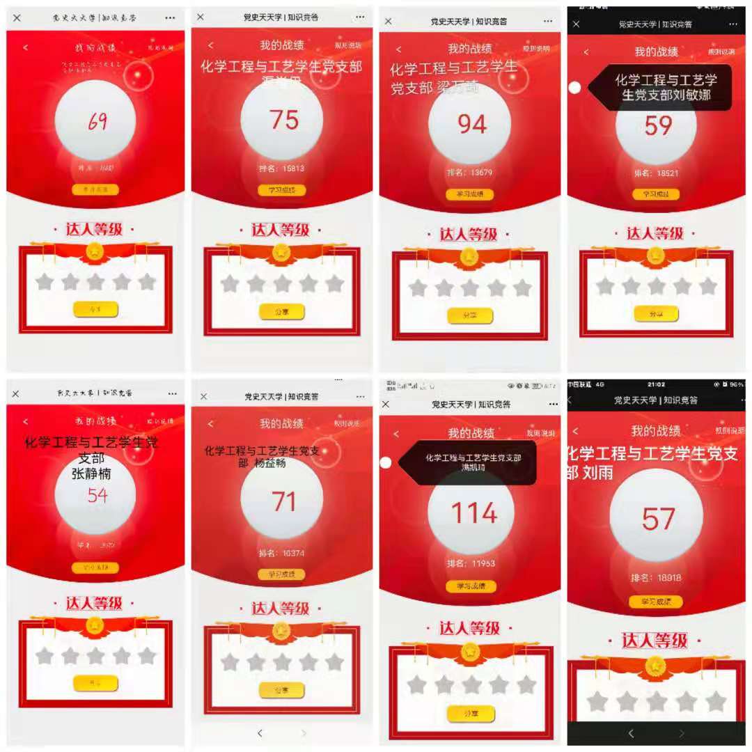 读书会后,支部党员以本周学习的知识为基础,在共产党员公众号中进行了“天天学党史”自测答题,并上交了个人测试成绩截图。