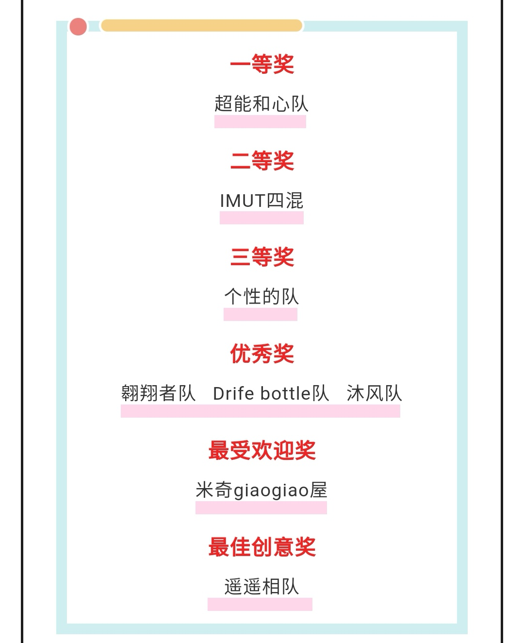 大赛得到了同学们的积极响应,共有19支队伍参赛。经过线上投票评选,最终,制药18-1团支部超能和心队荣获一等奖;食品19-1团支部IMUT四混队荣获二等奖;非19-2团支部个性的队获三等奖。