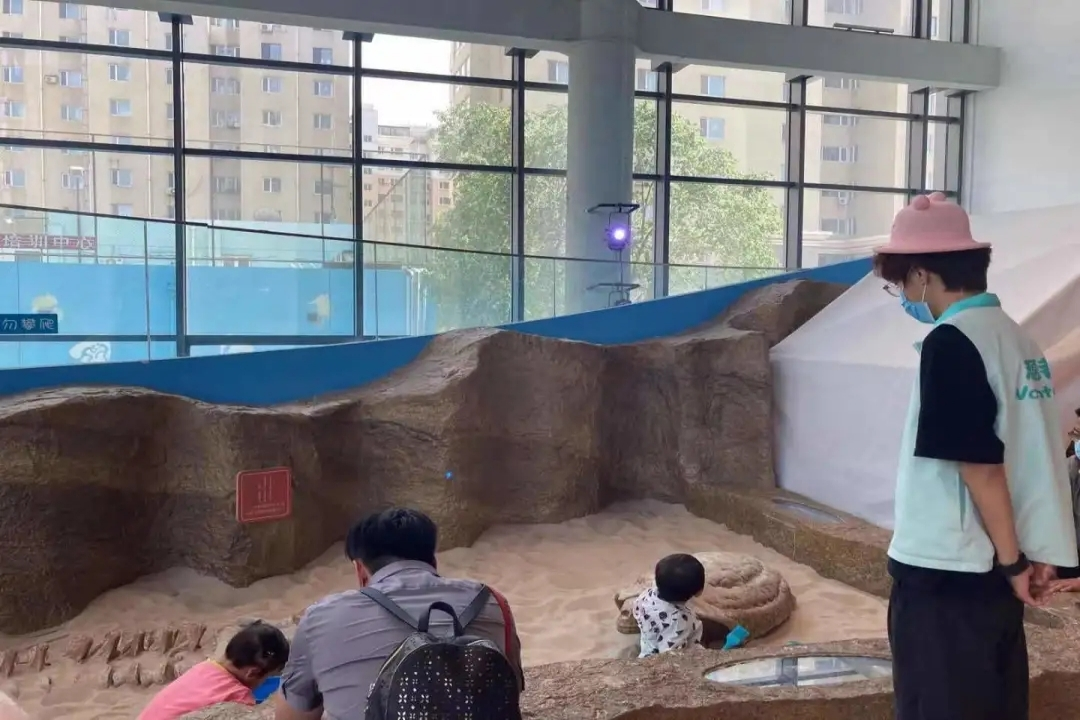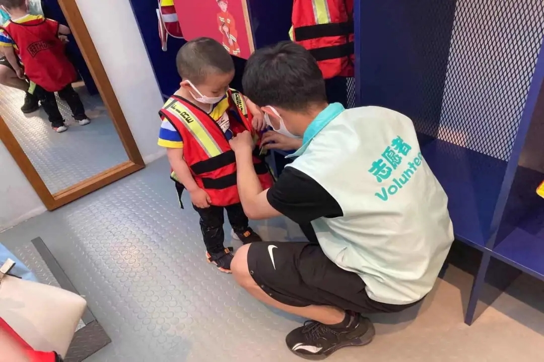 志愿者组织孩子们来到活力城市生活超市、消防站、戈壁沙漠体验区、遨游星空区等场馆,带他们体验了不同职业工作的辛苦,给他们介绍了食品制作、消防知识、恐龙化石、星空奥秘等科普知识,为他们讲述了救火英雄、献身戈壁滩植树造林模范任务的动人故事,鼓励孩子们要学习英雄模范锲而不舍和英勇无畏的精神,努力学习科学文化知识,长大后为国家为人民做贡献。