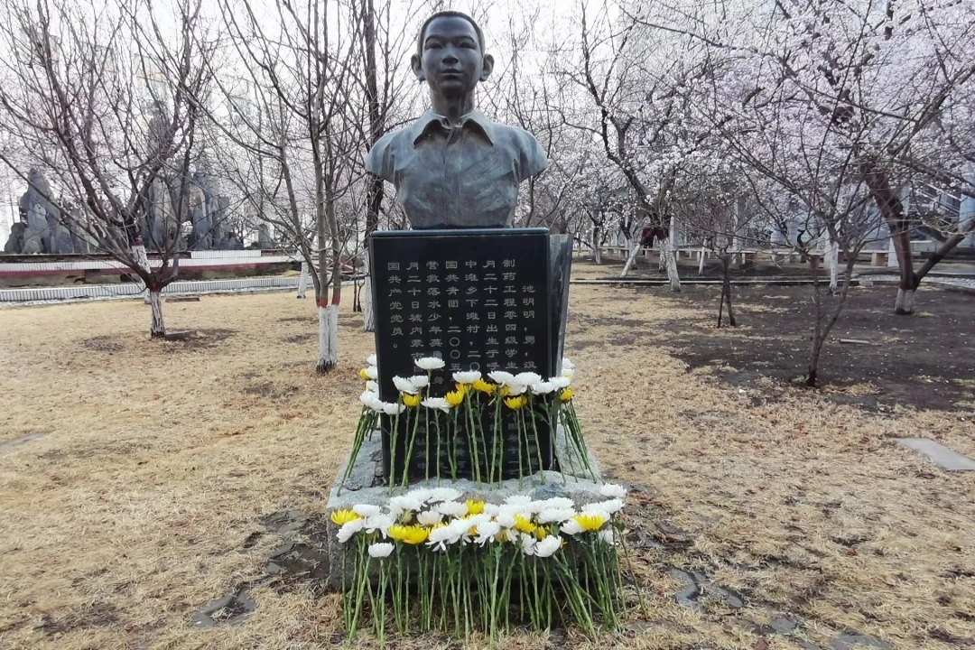 同学们全体肃立默哀,并依次向池明明的石像鞠躬、献上表达哀思的鲜花。每个人都在留言板上写下了自己的哀思。公司20级制药工程专业的员工以诗朗诵、演讲的形式表达了心中对池明明学长的钦佩,最后,哀悼活动在全体员工《假如爱有天意》的歌声中结束。池明明见义勇为的行为,展现了奉献自我、服务他人的赤子之心,展现了舍己救人、不怕牺牲的英雄气概,展现了勇于奉献、甘于奉献的高尚情操。同学们表示,此次在校内举行的纪念池明明学长的活动,汲取到了来自身边的强大精神力量。