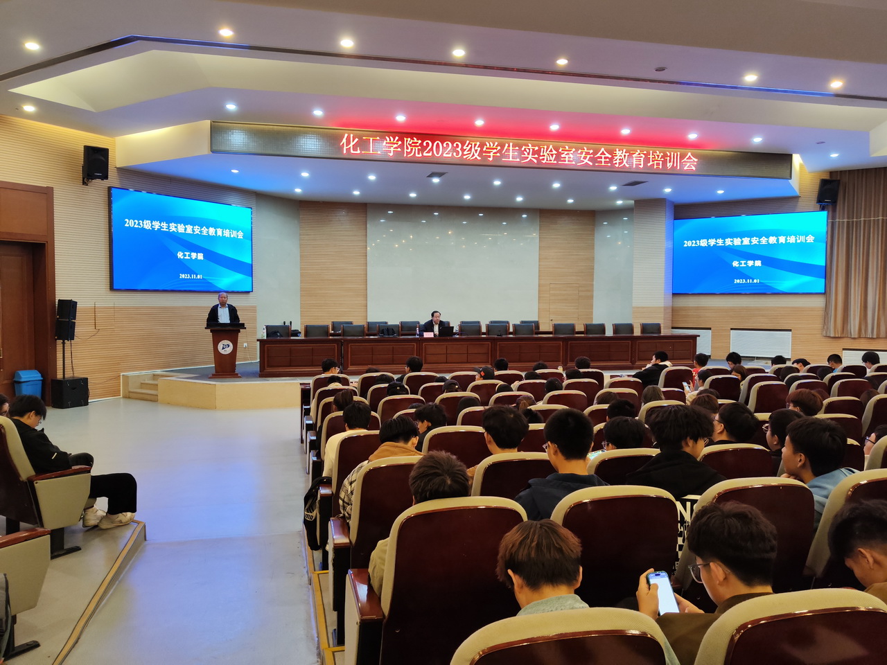 为了有效落实人才培养方案实施计划,切实增强员工的实验室安全意识和技能,按照校教务处关于开展《实验室安全教育》课程教学的指导意见要求。11月1日晚,公司在化工楼报告厅组织召开了2023级新生实验室安全教育培训会。
