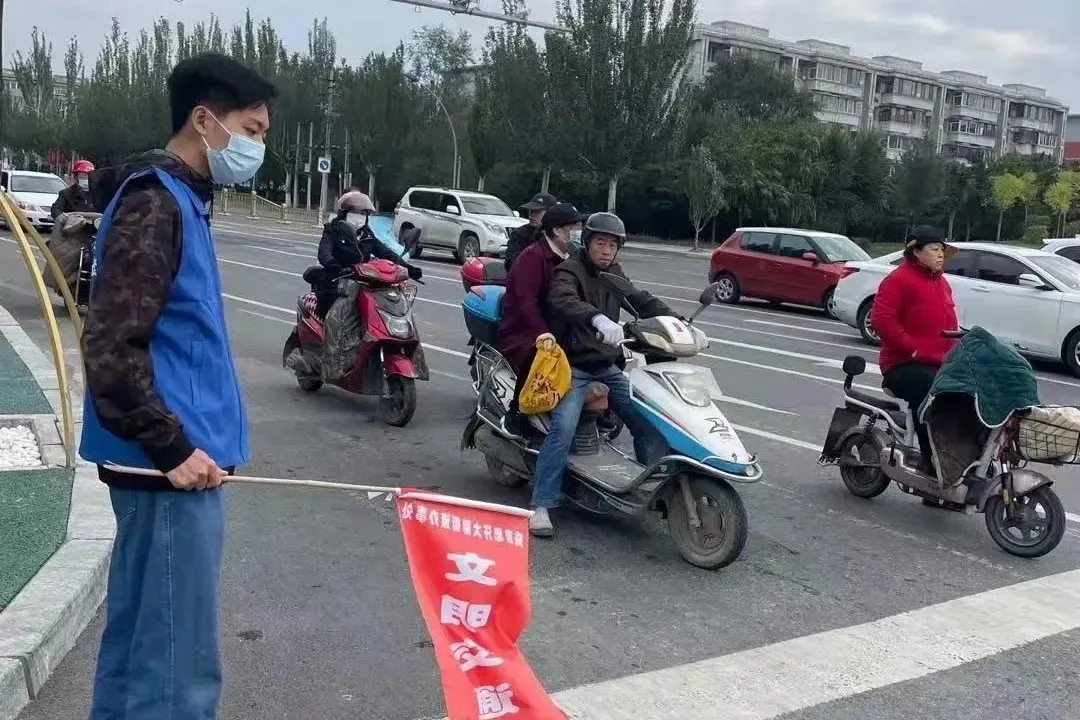 活动中,志愿者们统一身穿青年志愿者马甲、手持交通引导旗帜,分别在新城区政府路口、桥北路口、青城巷路口、人和路口、成吉思汗公园东口及恒大城路口引导来往行人及车辆文明通行。他们每天分为四组、每个路口每组4人,轮流在指定路口开展交通秩序管理、文明宣传、现场劝导等志愿服务工作,对闯红灯、车辆乱停乱放、不走斑马线、翻越隔离栏等不文明交通行为进行提醒和劝阻,对过往行人进行交通安全的宣传,引导行人遵守交通规则,增强市民的文明交通意识,为维护道路畅通做出了积极贡献。