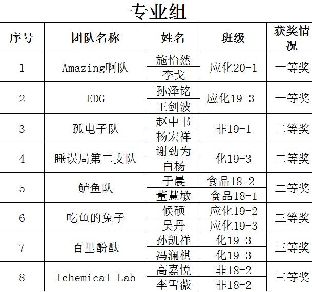 beats365官方网站第十届化学技能大赛获奖名单