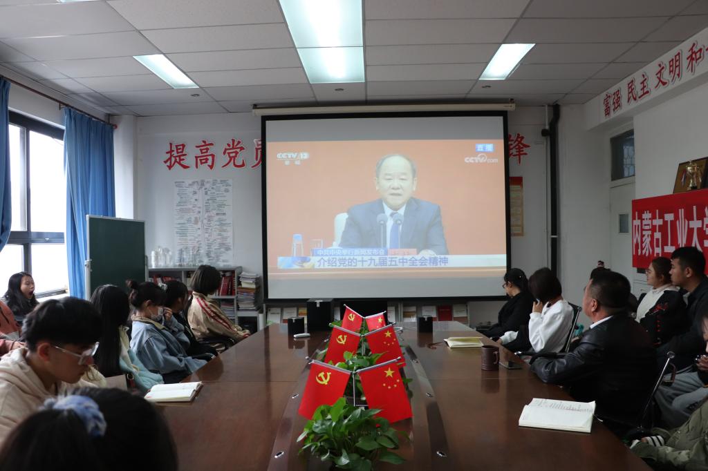 为深入学习贯彻党的十九届五中全会精神,beats365于10月30日上午组织师生集中观看了中共中央举行的党的十九届五中全会精神新闻发布会直播。公司党委书记王凯,副经理洪海龙,科级干部、党员和员工干部代表参加。