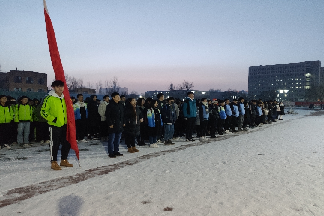 寒风刺骨,化工学子依旧着装整齐,准时参加。英姿飒爽的国旗班成员迈着整齐的步伐护送鲜艳的五星红旗走向升旗台,伴随着雄壮的国歌声,鲜艳的五星红旗徐徐升起。全体师生肃立注目,奏唱国歌。一颗颗赤诚的心守望着那面红色旗帜,坚定而又执着,深怀对国旗崇高的敬意和对祖国无限的热爱。