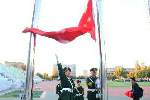化工学子迎着习习秋风,意气风发,着装整齐的在操场前迅速列队!庄严的升旗仪式在全体师生的注目下进行,国旗护卫队精神抖擞、步伐铿锵。伴着庄严的国歌,升旗手奋力挥臂将国旗抛向空中,五星红旗冉冉升起、迎风飘扬。食品16-2班宋姣姣同学发表了国旗下的讲话“我有中国,中国有我”。我们在努力奔跑,国家在飞速发展,作为当代青年,我们应该承载着继往开来的伟大使命,牢记历史、树立远大抱负、严于律己,用奋斗的青春谱写新时代的美好乐章。