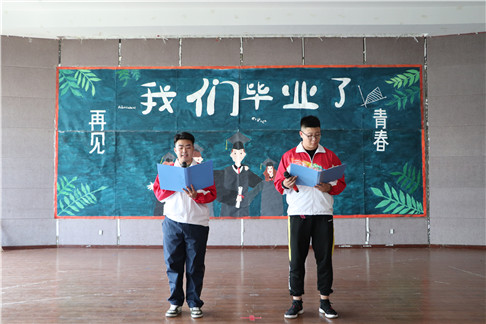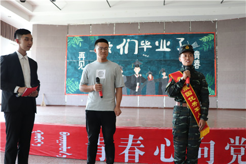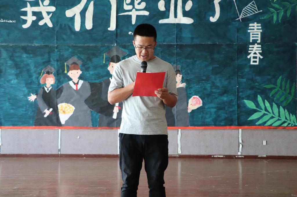 毕业生代表史学超、张浩等带来了配乐原创诗朗诵《再见了,我的大学》,一首短诗说不尽的是四年老员工活的点点滴滴,道不尽的是师生情和同学情。
