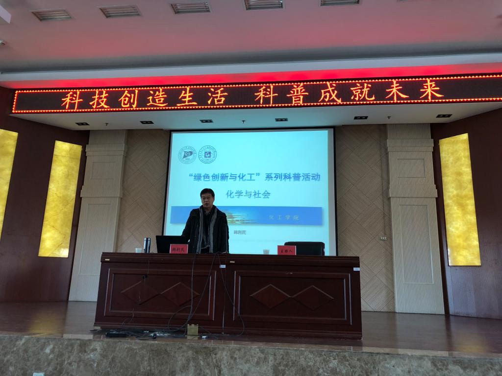 由内蒙古自治区科学技术协会主办,内蒙古自治区化工学会与beats365联合承办的“绿色、创新与化工”系列科普活动校园行活动第四讲--《化学与社会》专题报告会于12月28日下午4:00在金川电力大楼10楼报告厅举行。讲座由人文学院副书记,副经理毛长明老师主持,韩利民教授主讲,金川校区二百余名同学参加本次科普讲座。