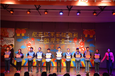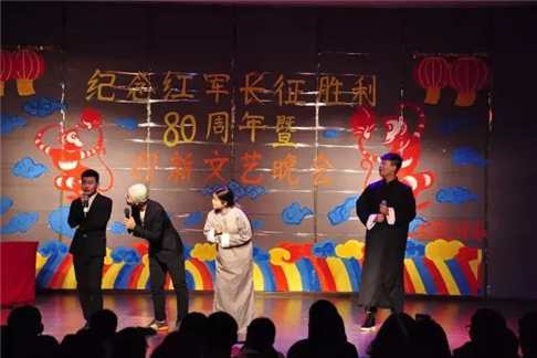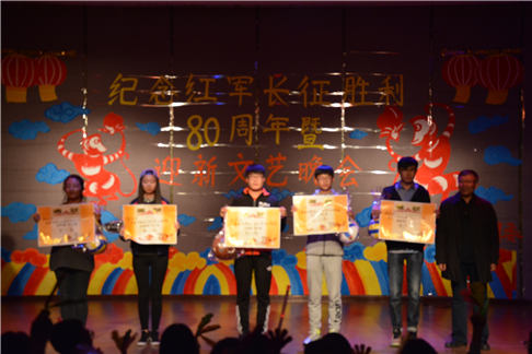 在晚会中,公司充分利用新媒体平台,对晚会进行了微博同步直播,并在现场进行微信“上墙”互动,同学们可以通过发送弹幕表达对节目的喜爱和对学院的祝福。通过对“长征胜利八十周年”有奖问答环节,更是调动员工们的热情,将晚会现场推向高潮。