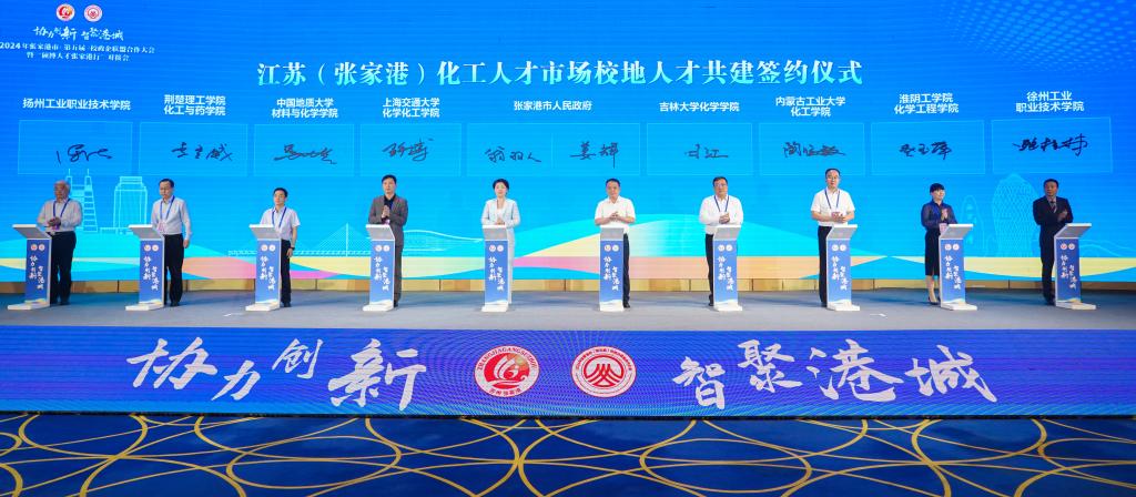 会上同时举办了“化工人才市场校地人才共建签约仪式”,陶明敏代表公司携上海交通大学beats365、吉林大学化学学院、中国地质大学材料与化学学院等8所院校与张家港市人民政府签订了共建协议,为后续公司的毕业生就业、校政合作、校企合作开辟了新的路径。