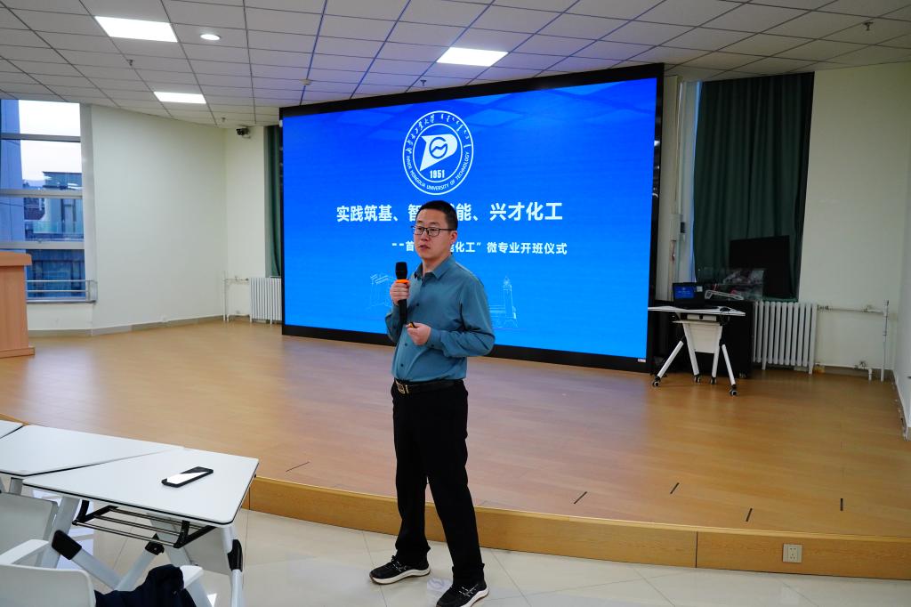 滕英跃老师从为什么开设智能化工微专业、老师如何去教、员工们如何去做三点,向在场师生给出了宝贵意见,希望各位同学通过“智能化工”微专业的学习,能够有所思、有所悟、有所获,成为未来化工智能化的先行者。