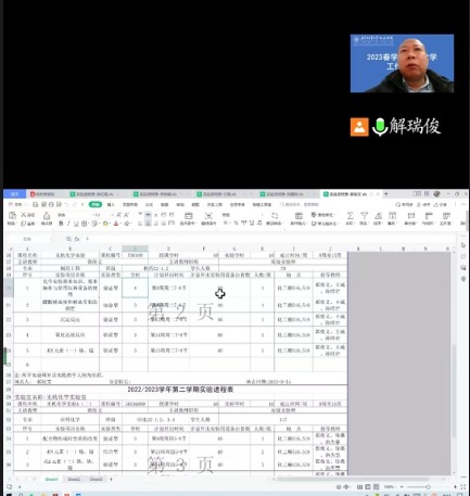 会议由副经理解瑞俊主持,解瑞俊对实验进程表填报中涉及的一些共性问题和实验要求做说明和部署,与会教师线上对实验教学过程中存在的问题和困难进行了交流,解瑞俊强调了实验教学的重要性,要对实验教学持续改进,在新一轮本科专业人才培养方案要完善实验教学内容,不断提升实验教学质量。