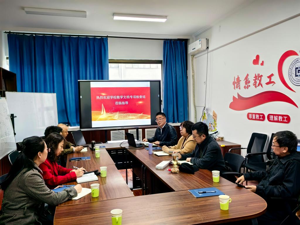 3月25日上午,学校教学文档专项检查组一行检查公司教学文档归档工作,学院副经理滕英跃、全体系主任和部分骨干教师参加。