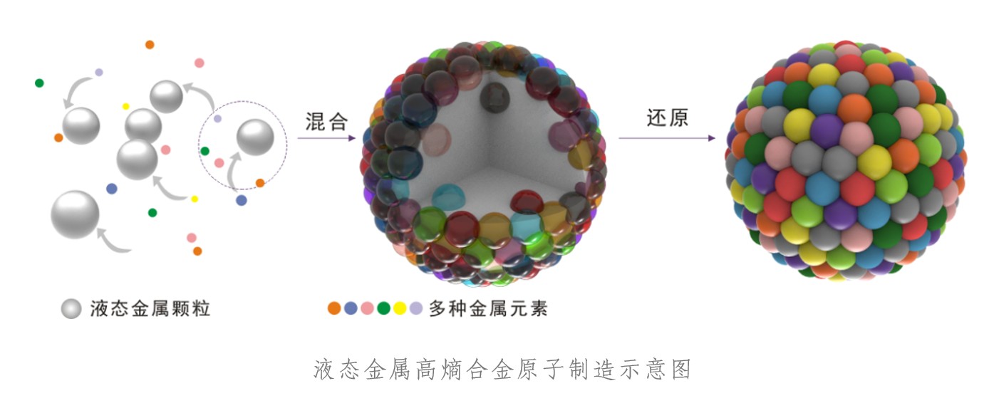 高熵合金是一种由五种或五种以上主元素组成的新型合金,在极端条件下结构力学、能源转换与存储、医疗器械等领域具有重要的应用前景。实现高熵合金的原子级精准制造是其应用的基础。付磊教授团队独辟蹊径,以“混合焓”作为切入点,降低反应的吉布斯能变,采用兼具负混合焓特性和流动性的液态金属,实现了温和条件下各类高熵合金体系的原子制造,极大拓展了高熵合金的组分选择空间,有望促进其在更多关键领域的应用。