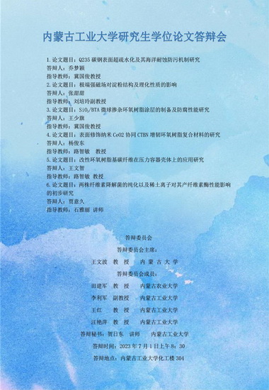 beats3652023届硕士研究生学位论文答辩7月3日答辩日程