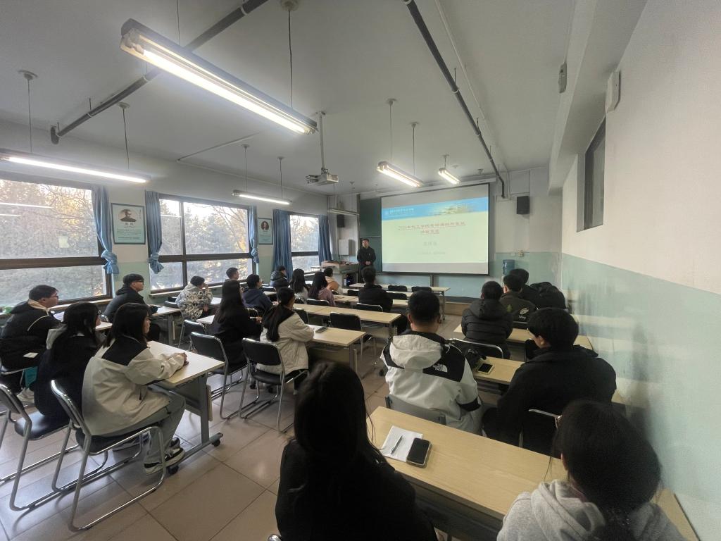 此次交流会由学院副经理冀国俊主讲,冀国俊老师从如何准备面试、如何合理选择调剂学校和专业、如何做好考研规划、如何明确个人目标等方面做了细致的指导。