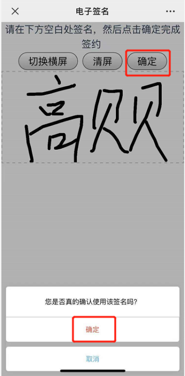 点击签名按钮后会弹出二维码进行扫码签名,签名后点击确认即可完成签名。