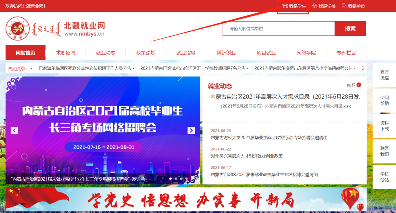 在北疆就业网右上角点击我是员工输入账号密码或微信扫码进行登录(如未注册请点击“立即注册”进行注册),登录后进入员工中心。
