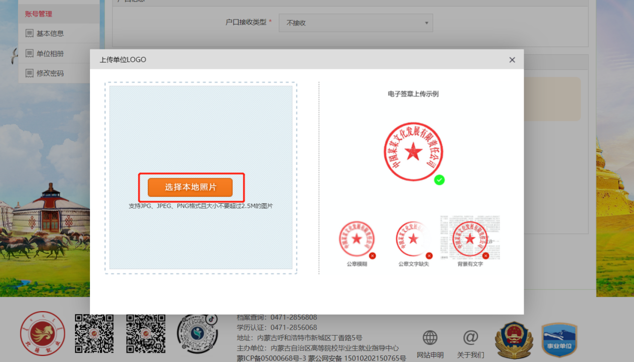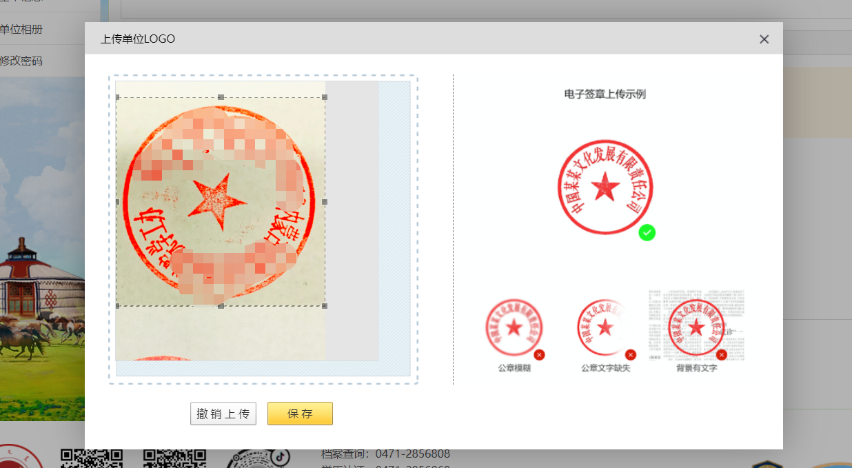 第二步:选择印章图片,上传后可调整印章的位置显示大小,调整后会有预览效果可查看,上传完成后点击提交即可。