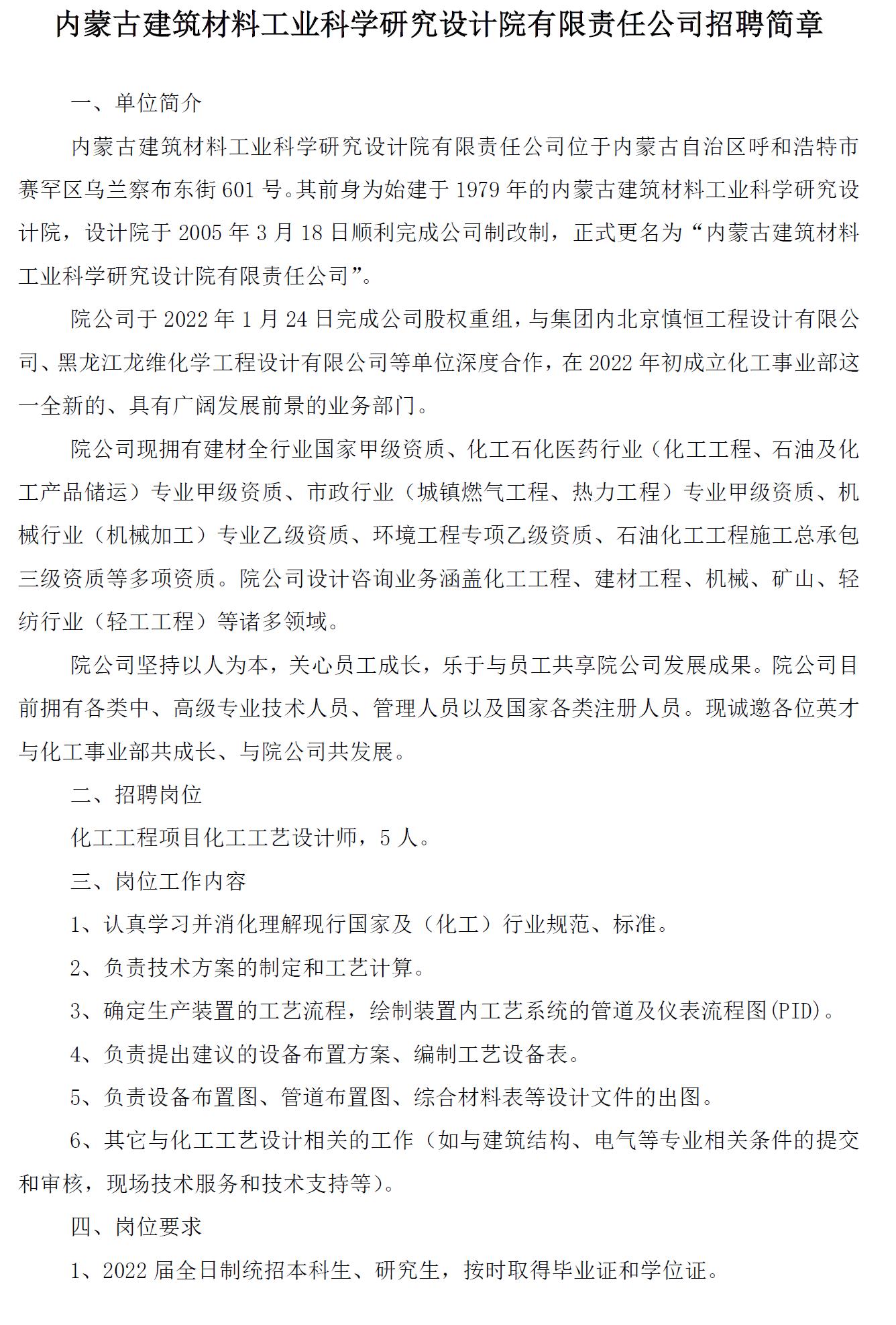 内蒙古建筑材料工业科学研究设计院有限责任公司