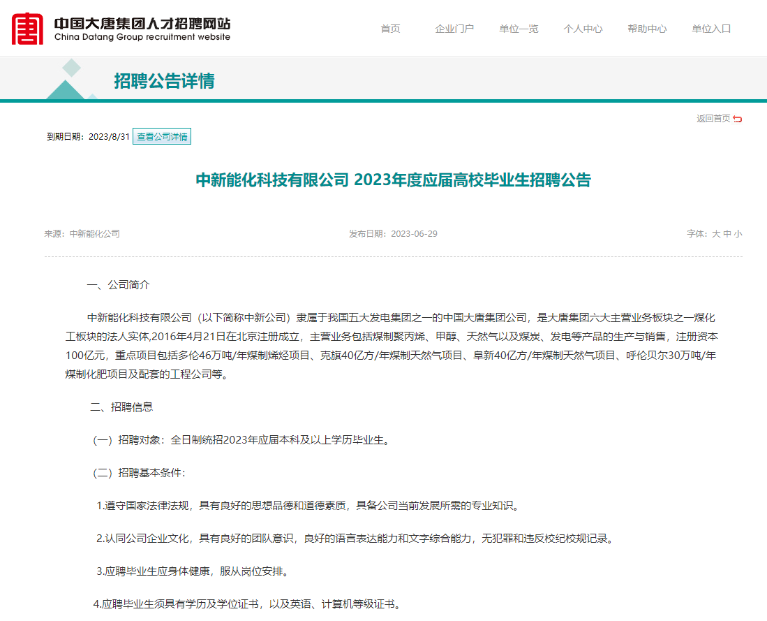 中国大唐集团招聘公告