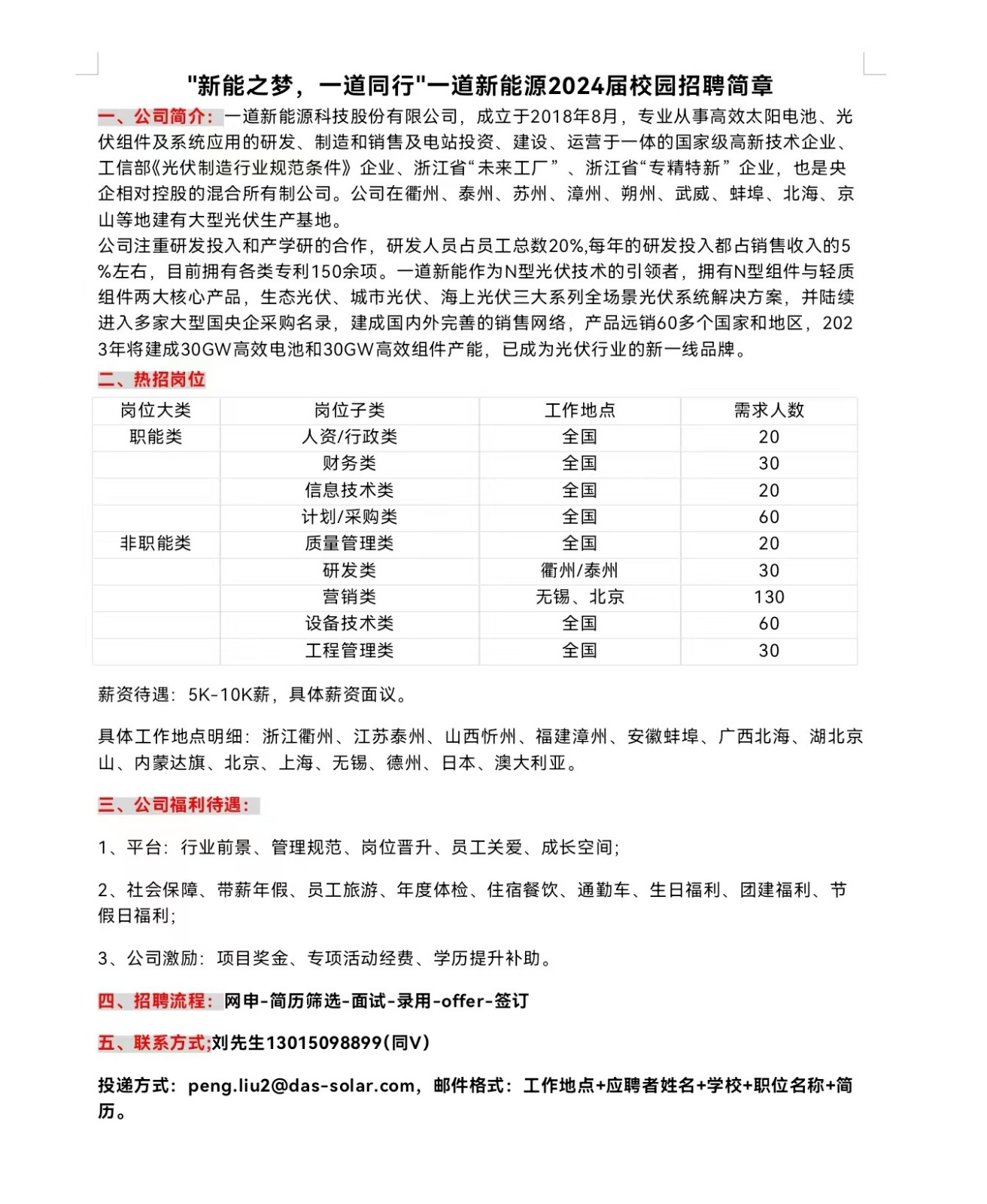 "新能之梦,一道同行"一道新能源2024届校园招聘公告