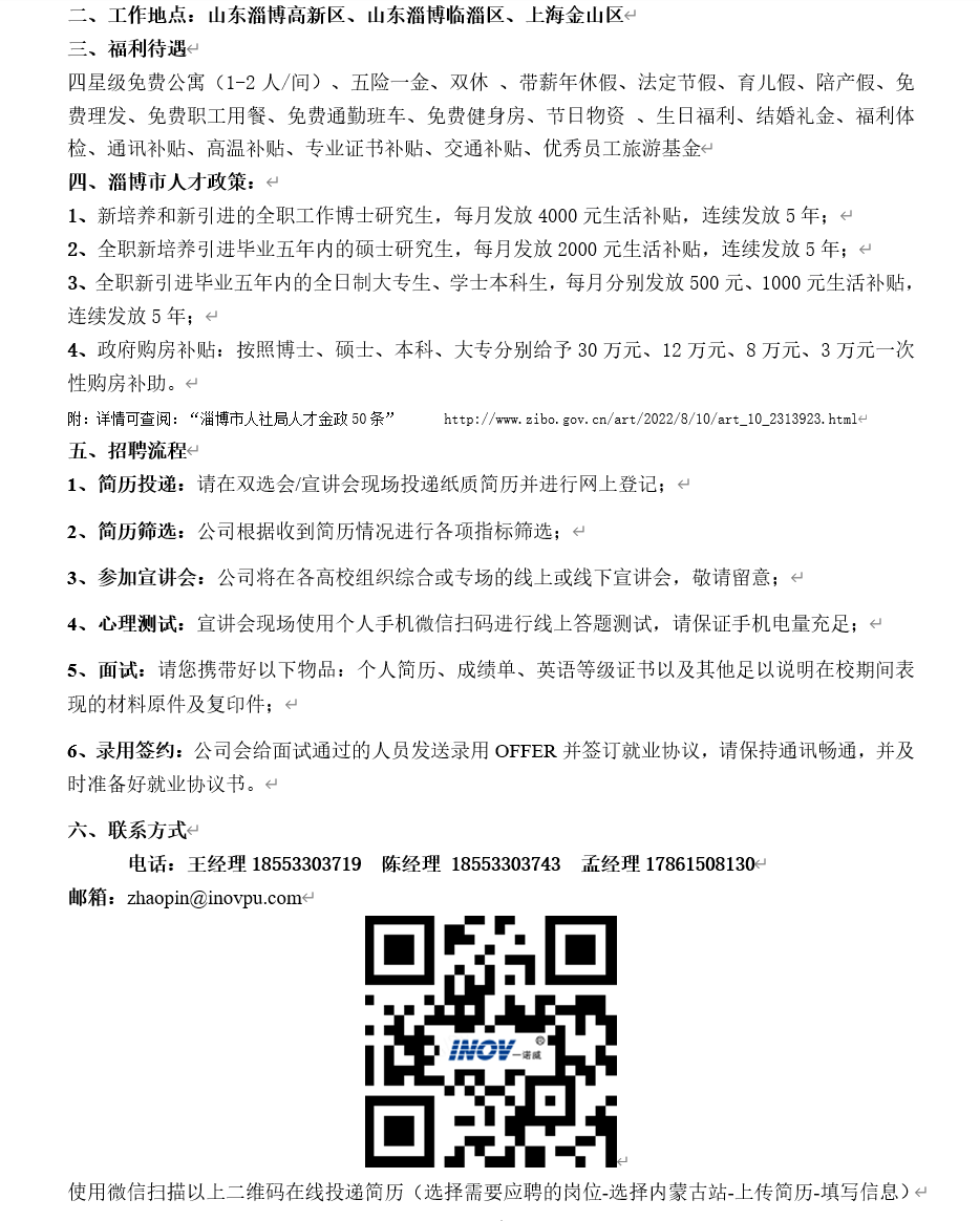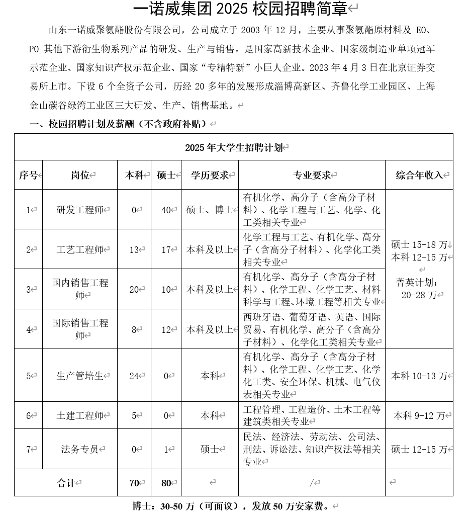 山东一诺威聚氨酯股份有限公司招聘公告