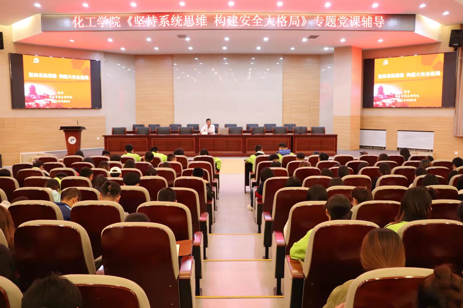 beats365党委于10月5日晚在化工楼报告厅,举办《坚持系统思维,构建大安全格局》的专题党课辅导报告。安全系教师党支部书记、系主任高智老师担任主讲,学院各支部入党积极分子和党员发展对象共379人参加。