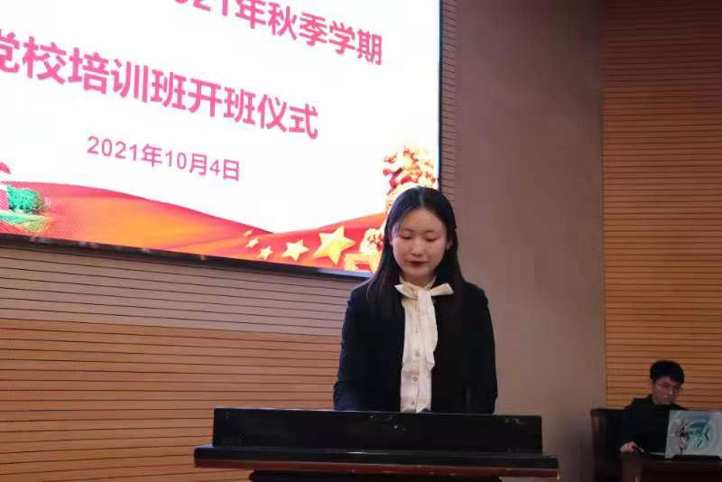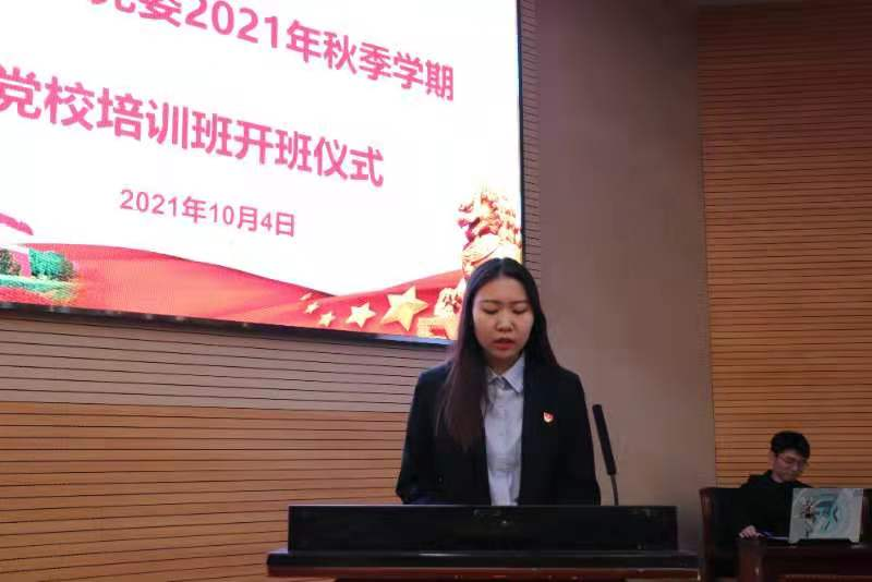 学院专职组织员任敏宣读《公司党委2021年秋季学期党校培训学习安排及考核办法》。制药18-1班陈天娇、安全19-2班陶春颖分别代表员工党员和入党积极分子学员作了表态发言。