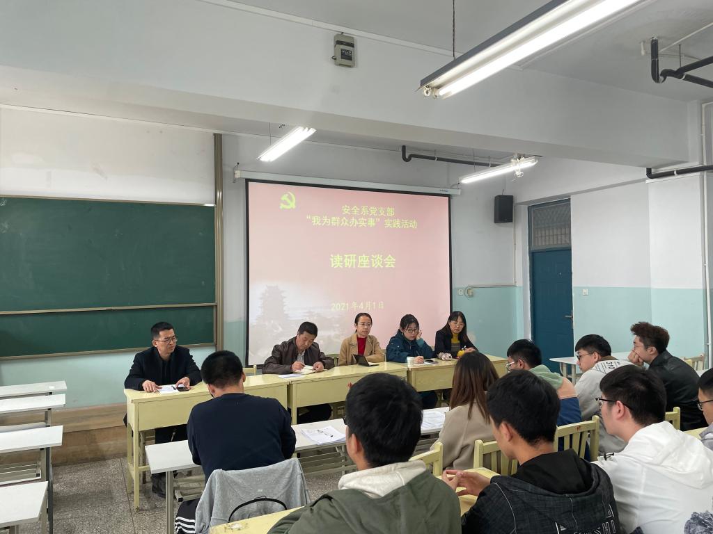 近日,beats365安全系党支部在三教401开展“我为师生办实事——考研座谈”实践活动。活动以座谈会的形式开展,目的是帮助安全工程专业的同学们解答考研相关问题,对未来发展方向提出建议。活动由安全系系主任、支部书记高智主持会议,安全工程系相关教师参加活动。