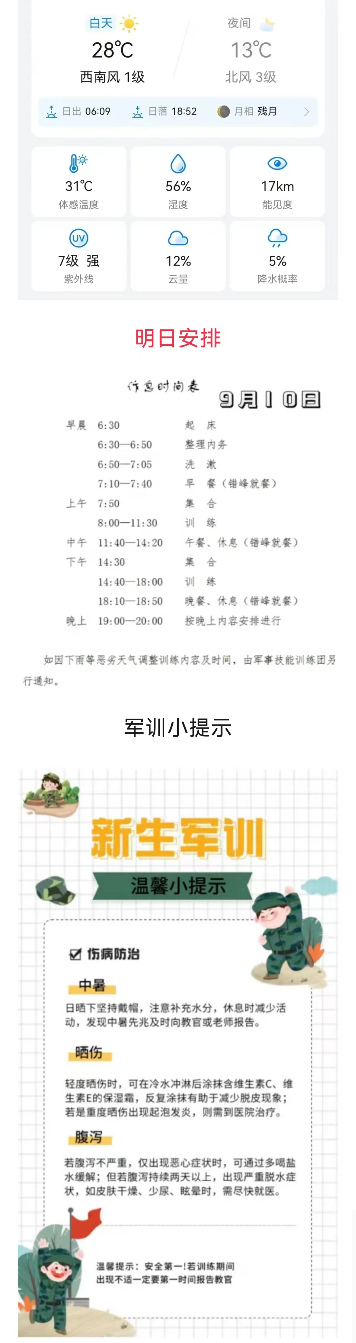 军训特辑|温馨提示9月9日军训日程安排