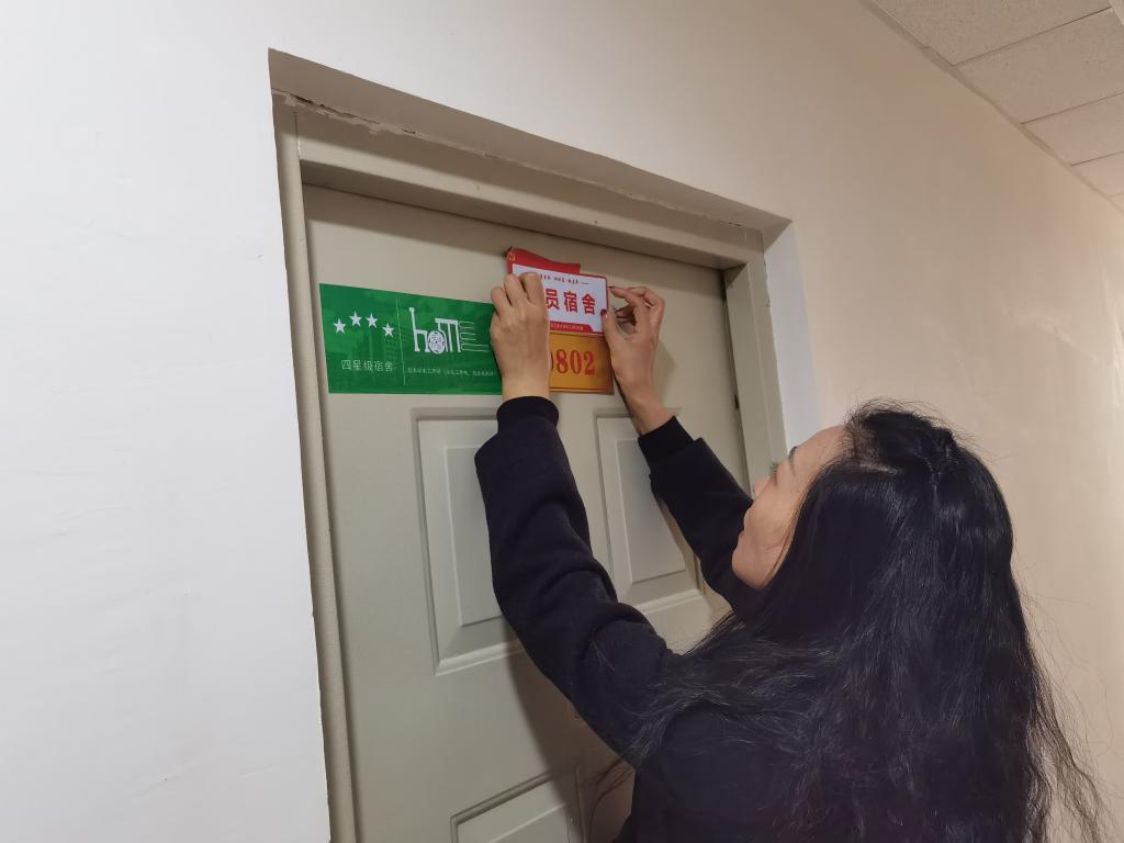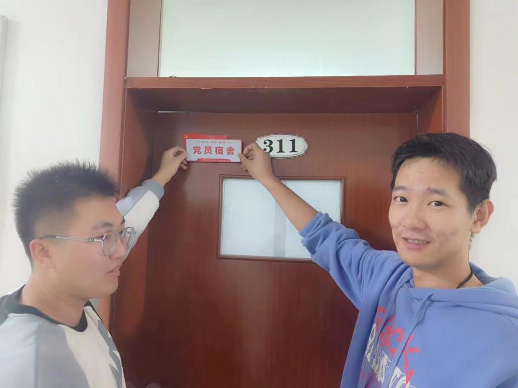 公司党委副书记、副经理李佳、党委委员、专职组织员任敏、员工工作办公室主任张宇与员工党支部书记一起为员工党员宿舍张贴“党员宿舍”标识,授牌亮身份,让员工党员由“隐”到“显”,亮出身份,参与宿舍管理与服务,带动寝室学风建设,真正做到“一名党员、一面旗帜,一间党员宿舍,一座先锋堡垒”。