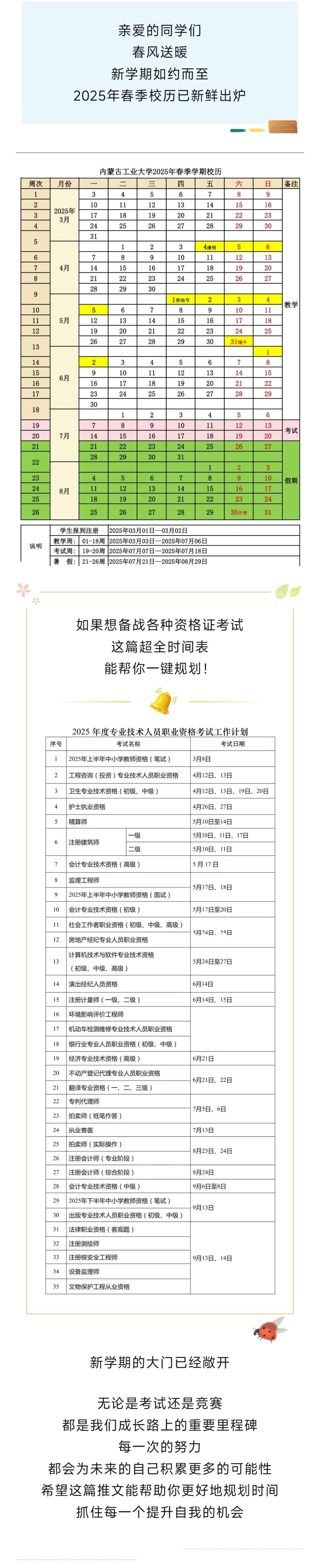 我为同学办实事|春季校历+资格证考试时间表
